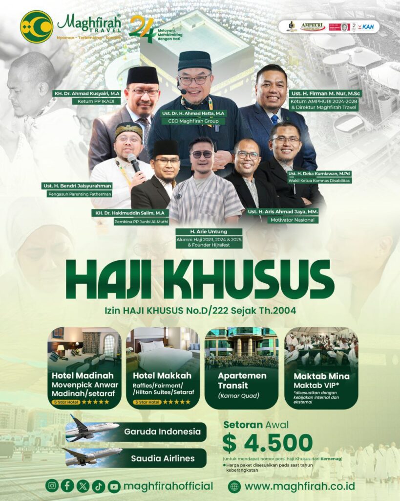 Haji Khusus bersama Maghfirah Travel: Waktu Tunggu Hanya 5-9 Tahun, Lebih Nyaman, Full Bimbingan Ibadah, sesuai Sunnah Rasulullah SAW.