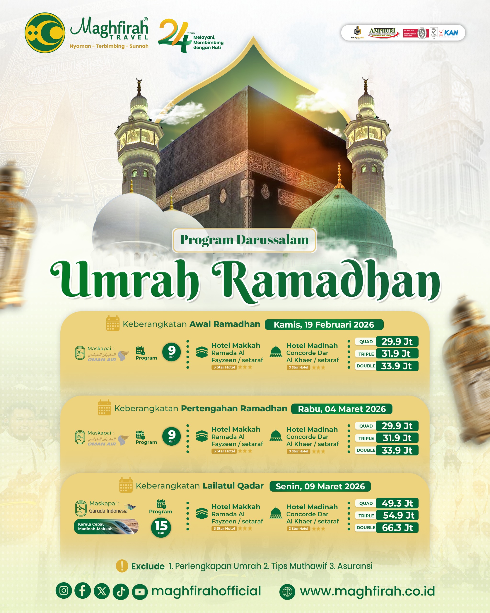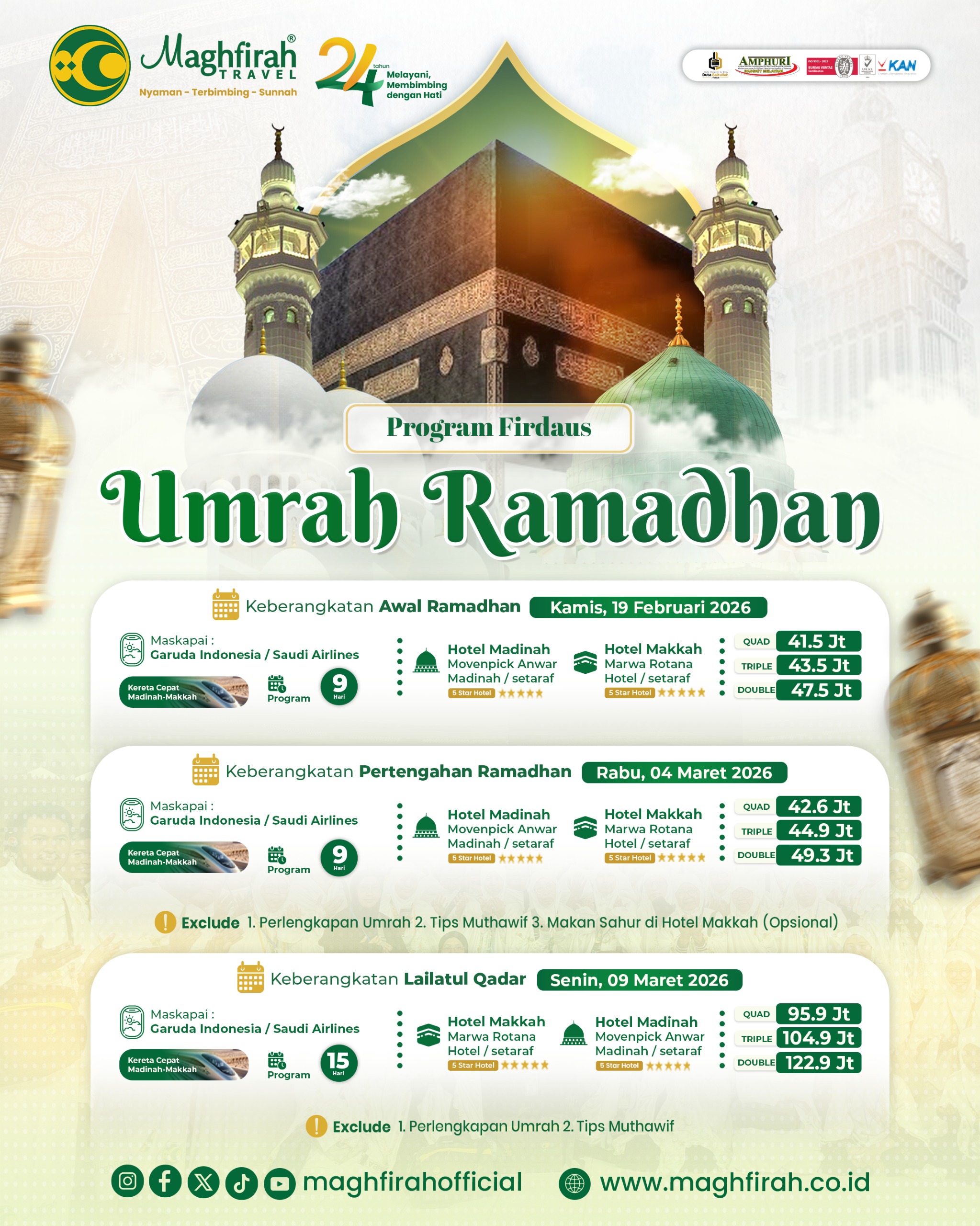 Jangan sekadar berangkat, tapi pastikan ibadah Anda tenang, nyaman, dan penuh keberkahan. Bersama Maghfirah Travel, perjalanan Anda insya Allah lebih bermakna.
